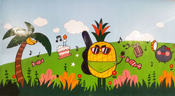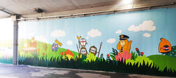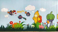 자체 캐릭터 브랜드인 바나스타(BANASTAR)를 활용하여 높이 3m 총 길이 160m 의 대형 캐릭터 벽화를 작업하였습니다.